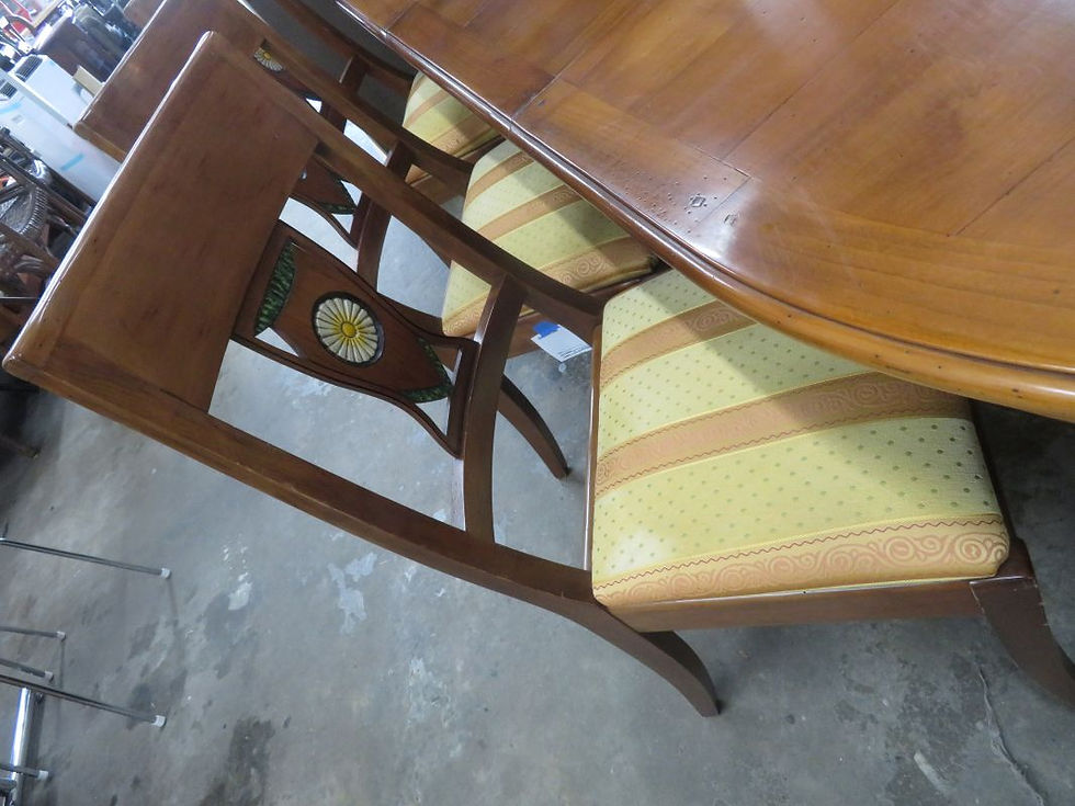 2 Leafs with cranks, 8 chairs & three pieces of glass for top. Very Nice clean condition!